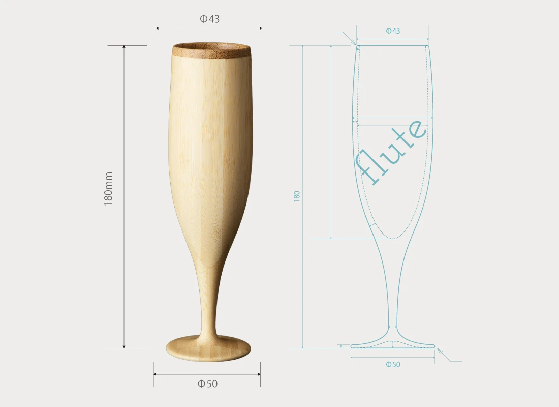 スパークリング系のお酒の場合、ガラス製や陶器にはない天然素材ならではの繊細できめ細かい泡立ちと、くちあたりにまろやかさを伝えます。