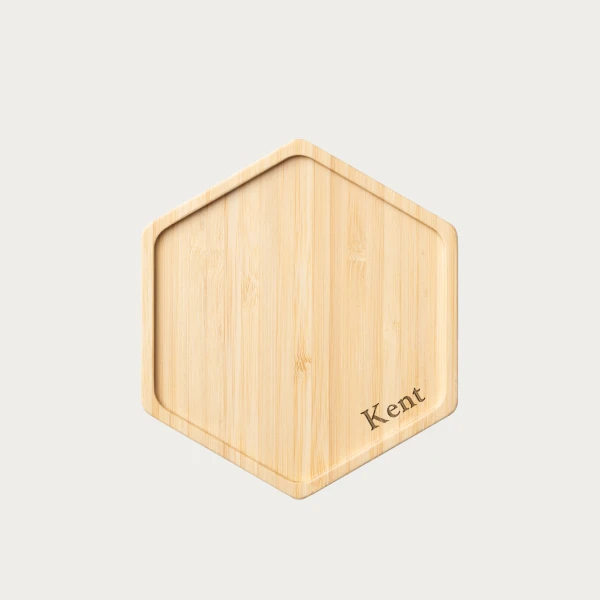 ハチの巣(ハニカム)をモチーフにした6角形の竹製コースター。シャープで幾何学的なシルエットと、ぬくもり伝わるやさしい素材感。